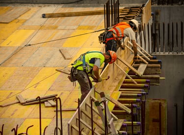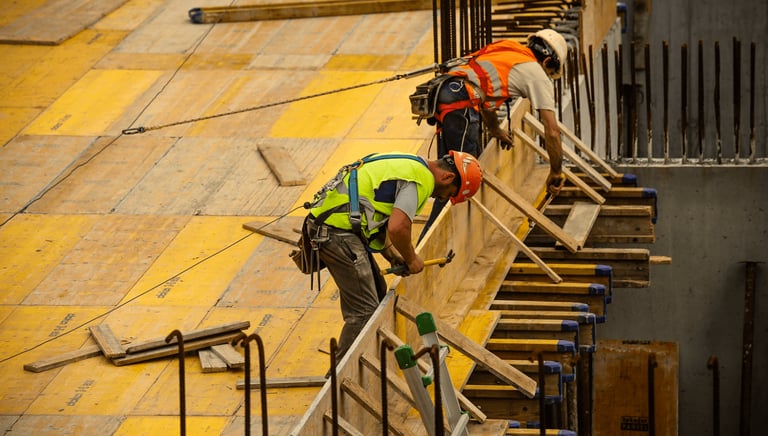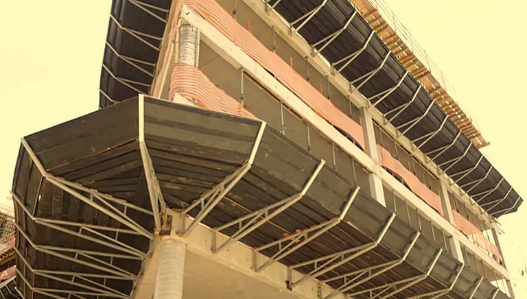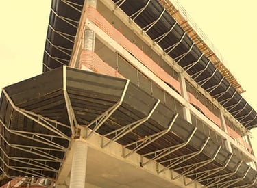 Dimensionamento e execução de bandejas de proteção conforme a NR-18, essenciais para obras da construção civil e para a proteção coletiva contra quedas de materiais.
